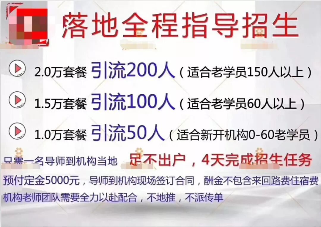招生团队一般是流动式办公,做完活动收完钱拍拍屁股走人,一个城市接着一个城市,安排专人去开发,并排期组织。他们最擅长的不是教学,而是如何设计低价引流,进行裂变传播。